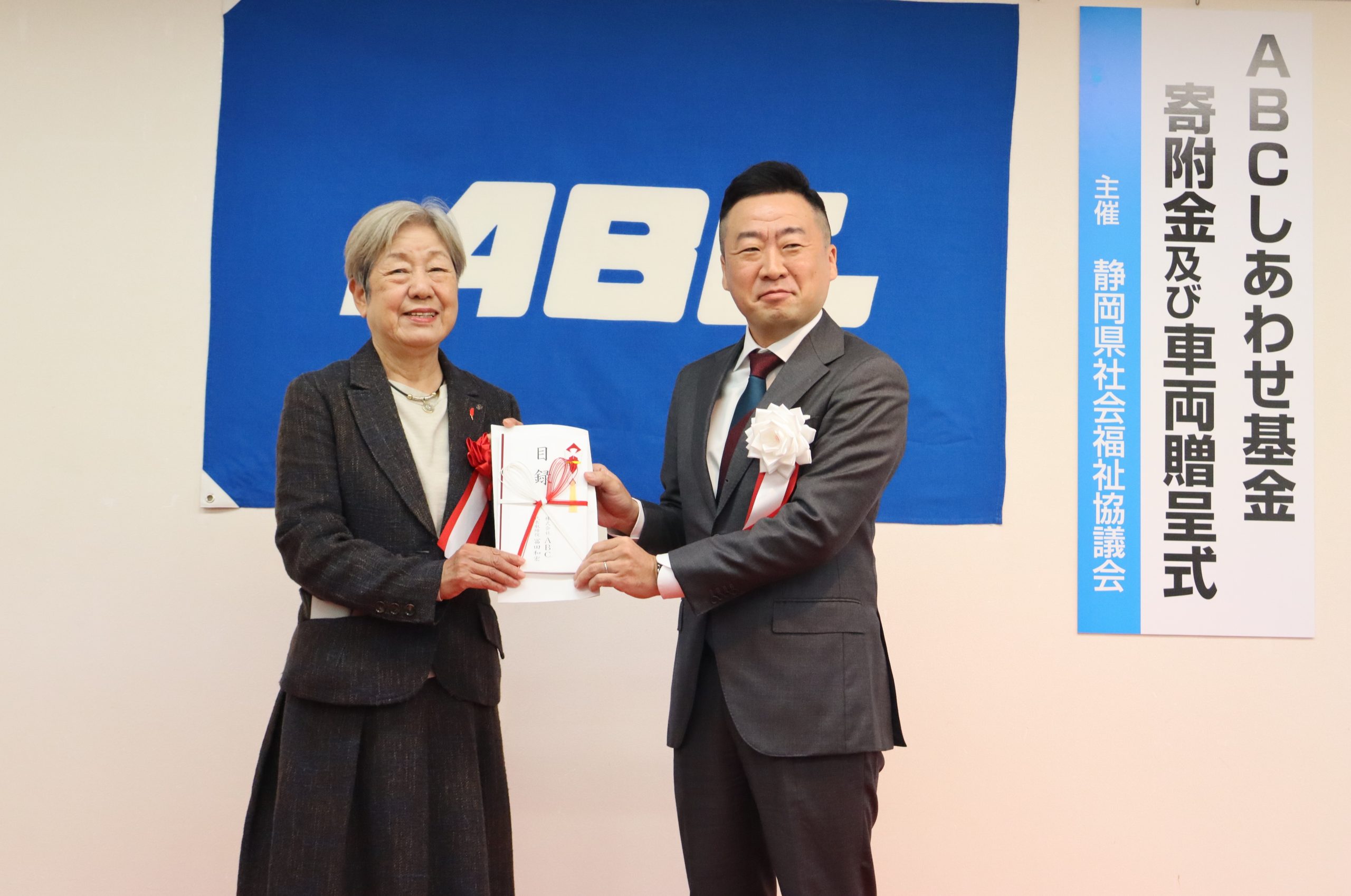 2025年11月26日(水)、静岡市葵区の静岡県総合社会福祉会館シズウエルにおいて、ABCしあわせ基金の寄附金贈呈式及び車両贈呈式が執り行われました。